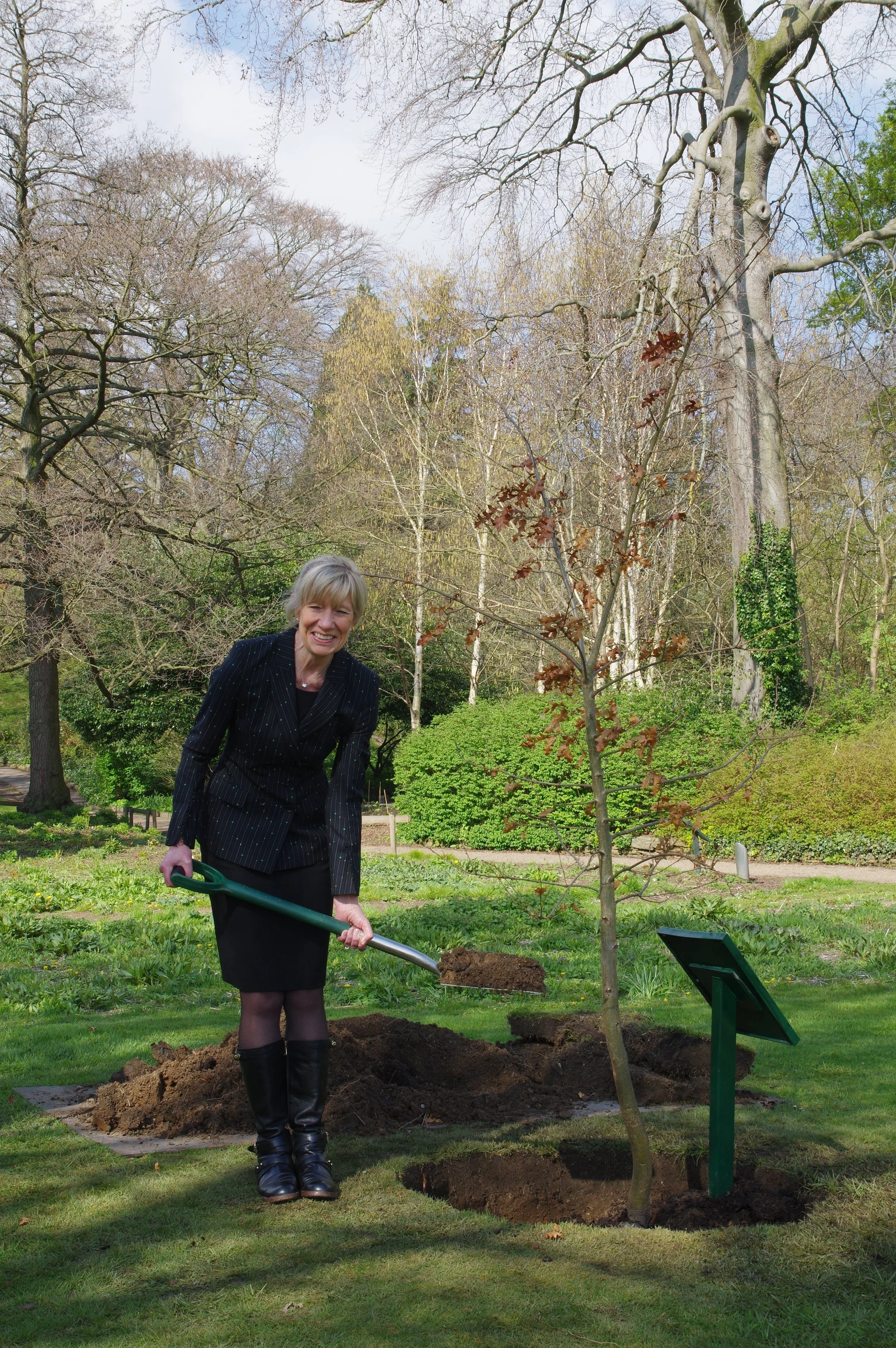 Pictured: Lord-Lieutenant of South Yorkshire, Professor Dame Hilary Chapman DBE planting the Queen’s oak on the South Lawns.