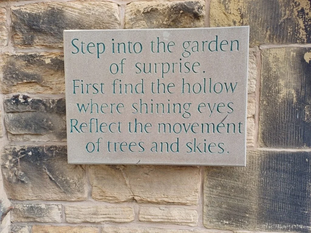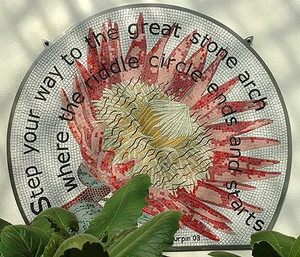 New to the Gardens was 'The Riddle Trail', initiated by Sheffield's 'Off the Shelf Festival of Writing and Reading' in 1999 in collaboration with the Sheffield Botanical Gardens. Funding came from a number of sources: the Arts Council of England and the Regional Arts Lottery Programme, as well as the Heritage Lottery Fund Local Parks Programme award for the restoration of the Gardens.